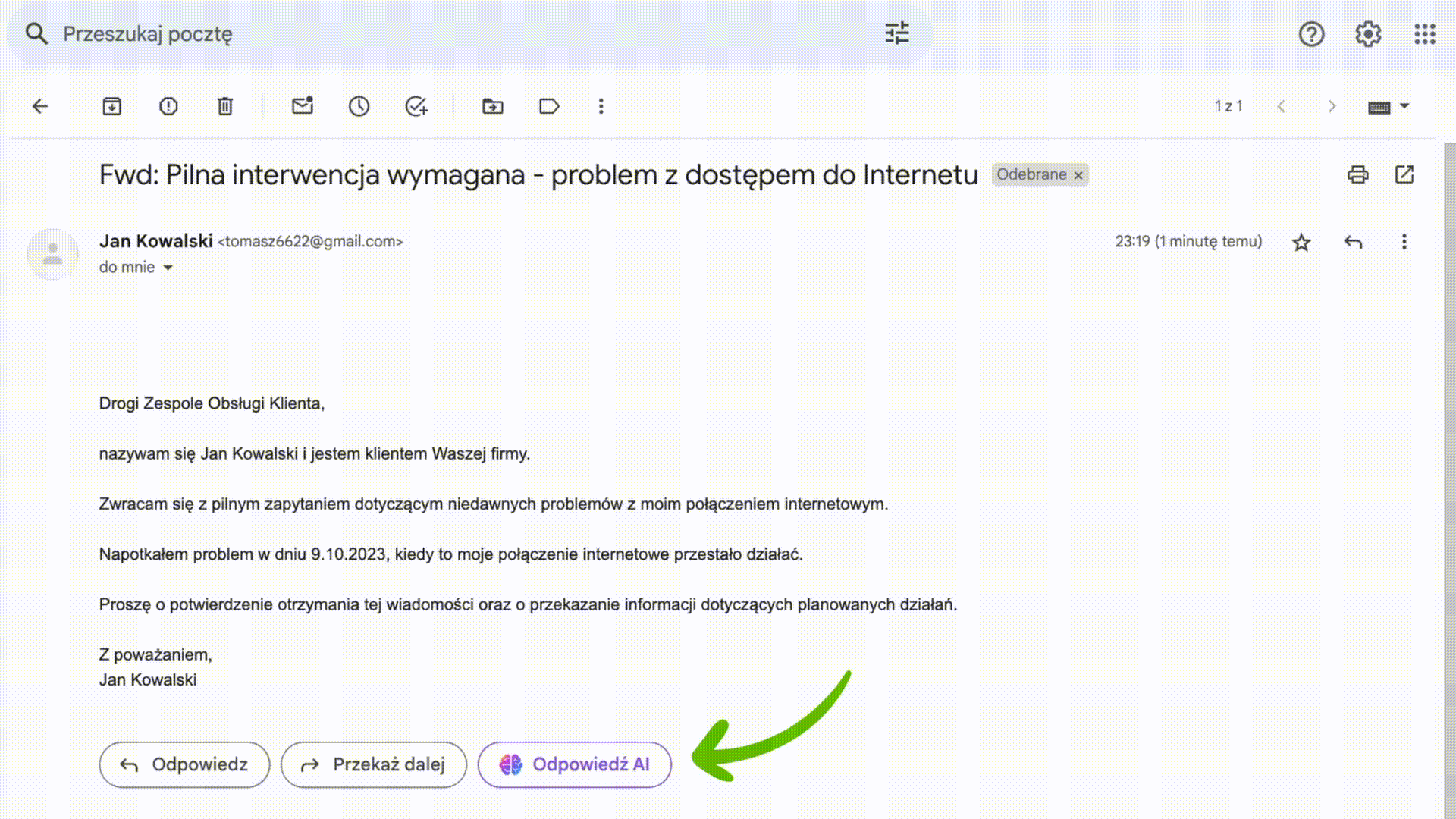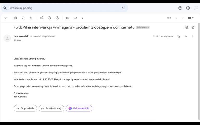 📧 Przykładowy mail z oczekiwaniem na odpowiedź