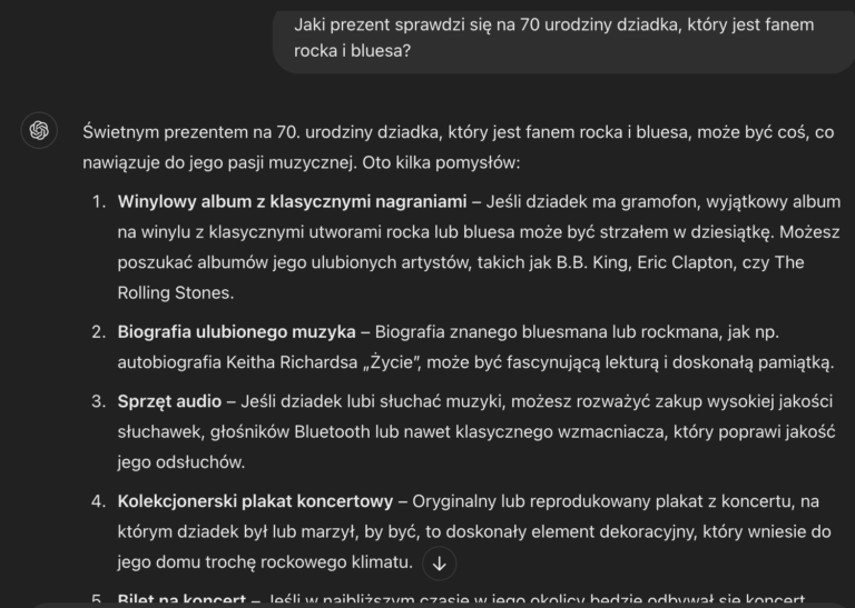 Najpierw zacząłem od ChatGPT – jest to najpopularniejsze narzędzie sztucznej inteligencji.